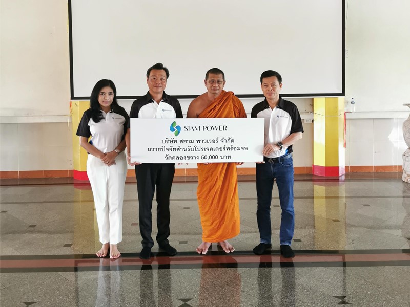 บริษัท สยาม พาวเวอร์ จำกัด ถวายปัจจัยสำหรับการจัดซื้อโปรเจคเตอร์พร้อมจอฉาย แด่พระครูโสภิตธรรมวิสุทธิ์ เจ้าอาวาสวัดคลองขวาง
