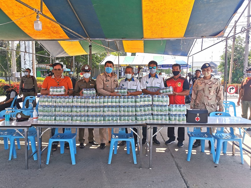 สยาม พาวเวอร์ มอบน้ำดื่มแก่เจ้าหน้าที่ประจำจุดคัดกรองโรคโควิด-19 อำเภอไทรน้อย