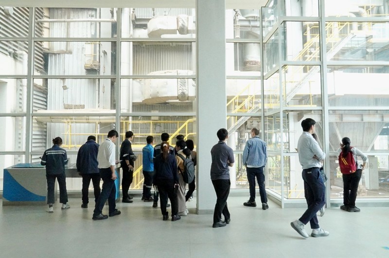 จากนั้น คณะได้เดินทางต่อมายังโรงไฟฟ้า ศูนย์การเรียนรู้ สยาม พาวเวอร์ โดยมีนายอุดมณัช บุญคำ หัวหน้าแผนกผลิต พร้อมด้วยทีมงานร่วมให้การต้อนรับ และนำเสนอภาพรวมการดำเนินงานของโรงไฟฟ้า รวมถึงกระบวนการผลิตกระแสไฟฟ้าจากเชื้อเพลิงขยะ ด้วยเทคโนโลยีที่ทันสมัยและเป็นมิตรต่อสิ่งแวดล้อม
